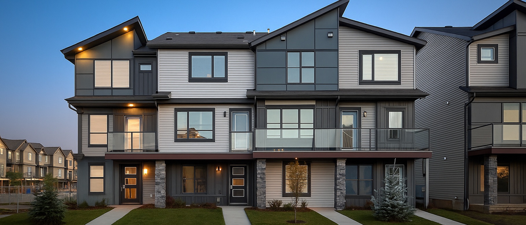 - Two-storey townhomes with parking pads