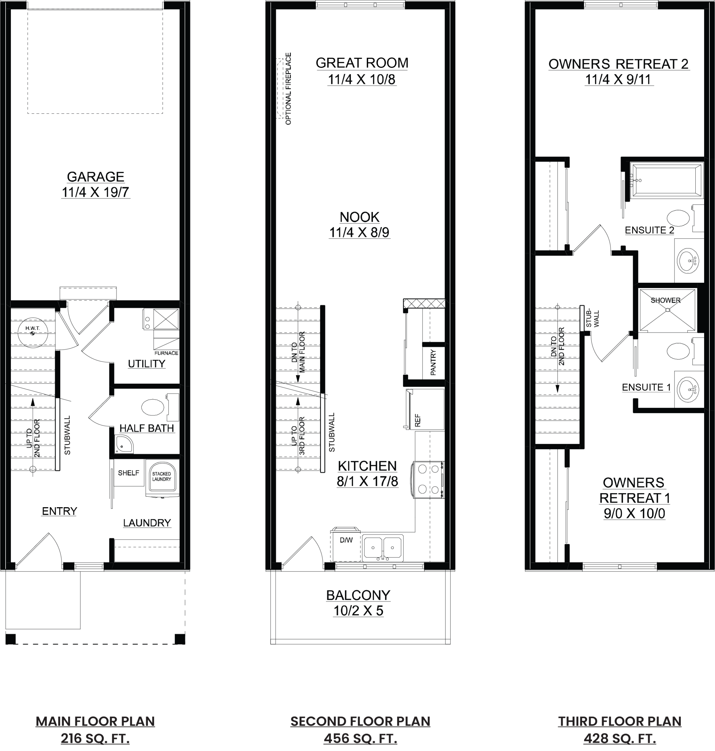 2 Beds 2.5 Baths 1100 SqFt Three-storey Townhome