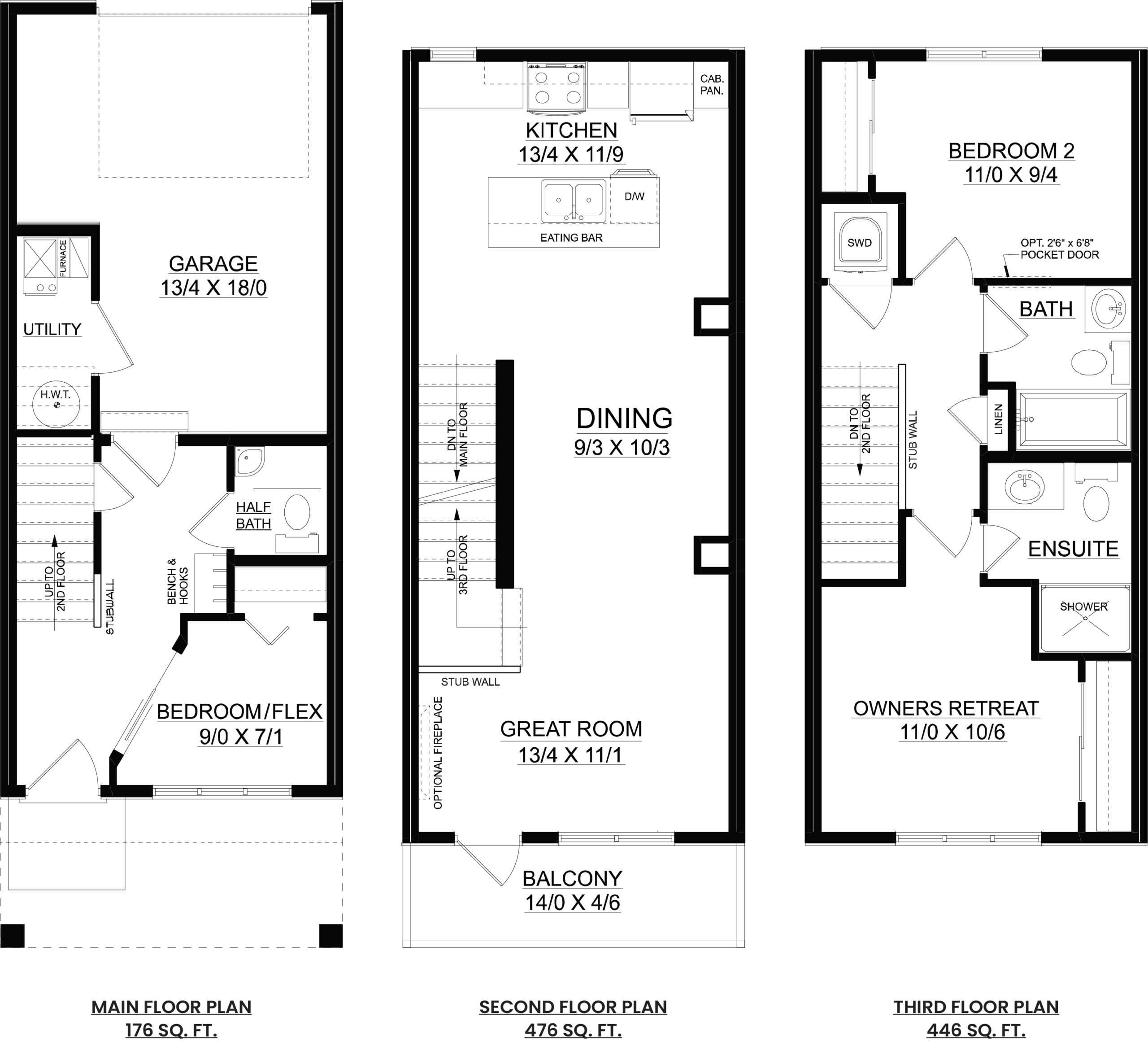 3 Beds 2.5 Baths 1098 SqFt Three-storey Townhome