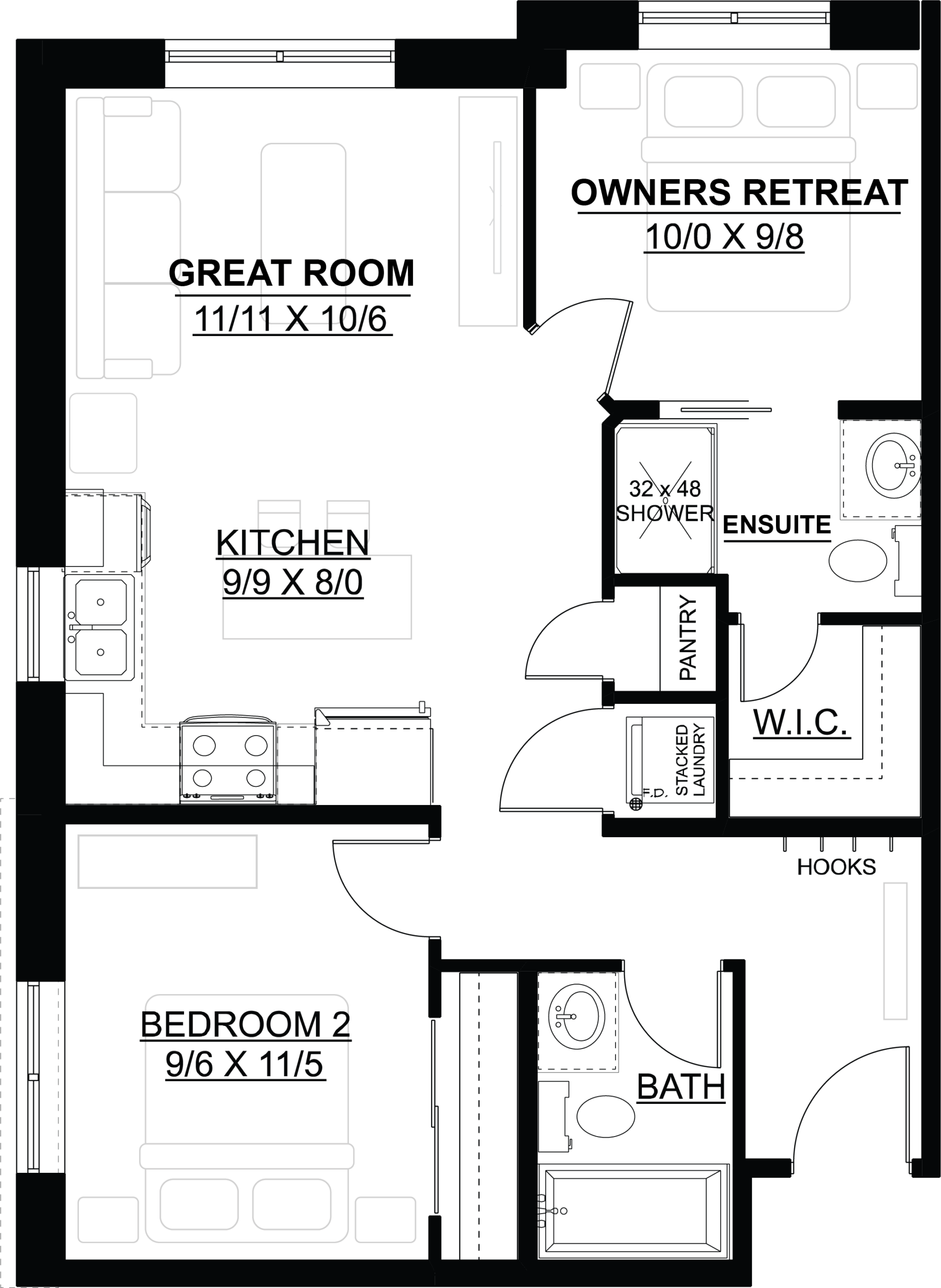 - Urban flat condos with studio, 1 & 2 bedroom floor plans