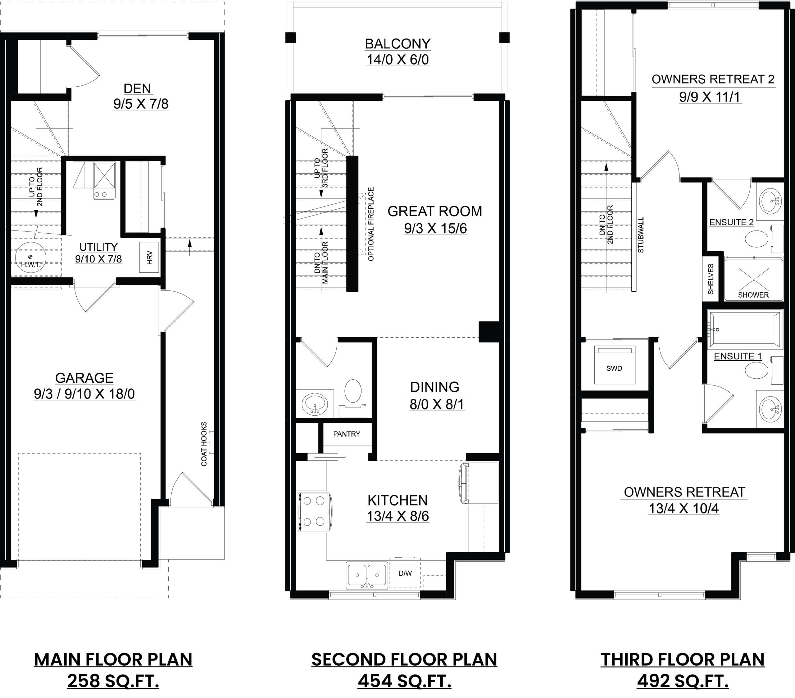 - Three-storey townhomes with attached garages