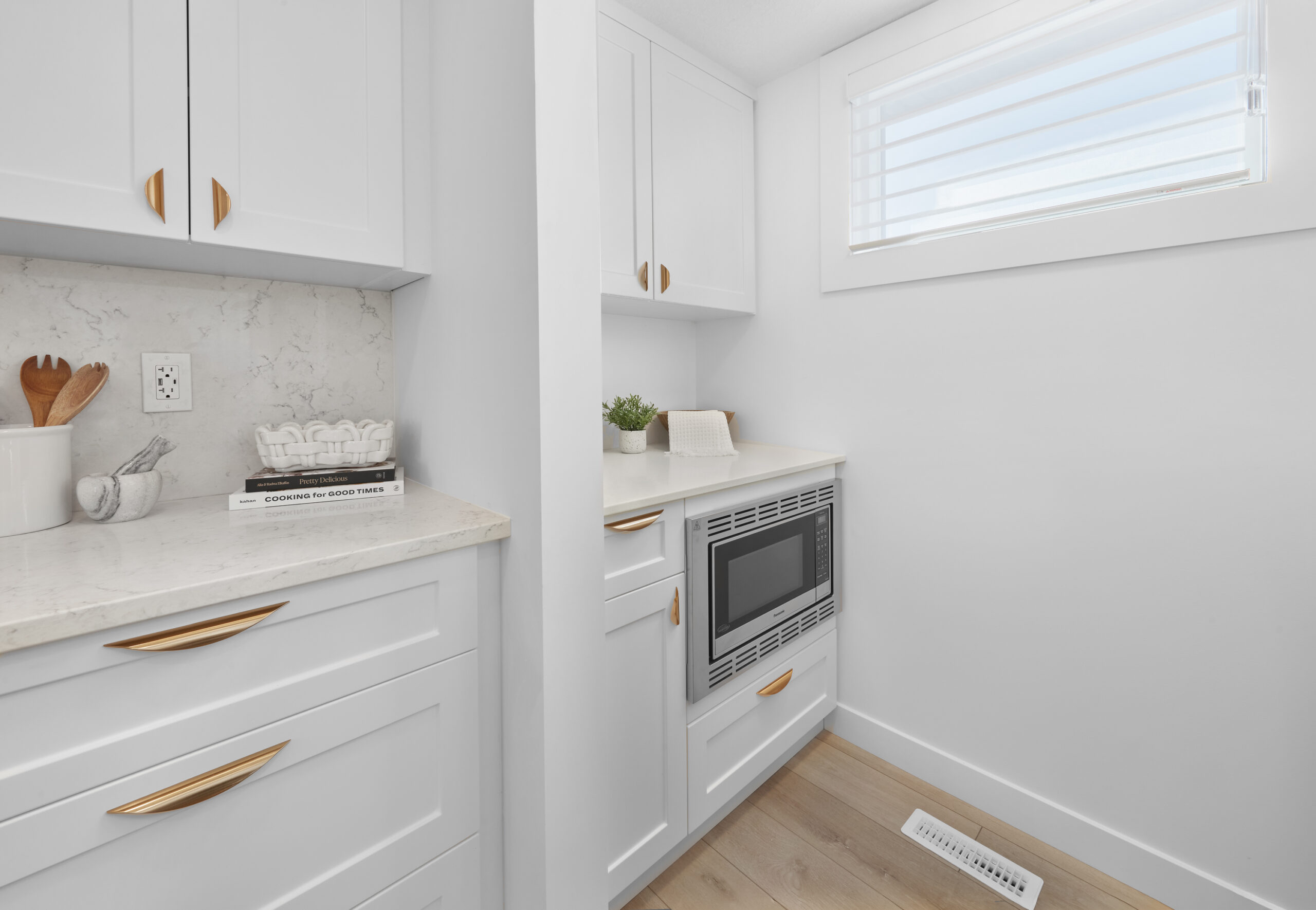 - Quartz countertops throughout