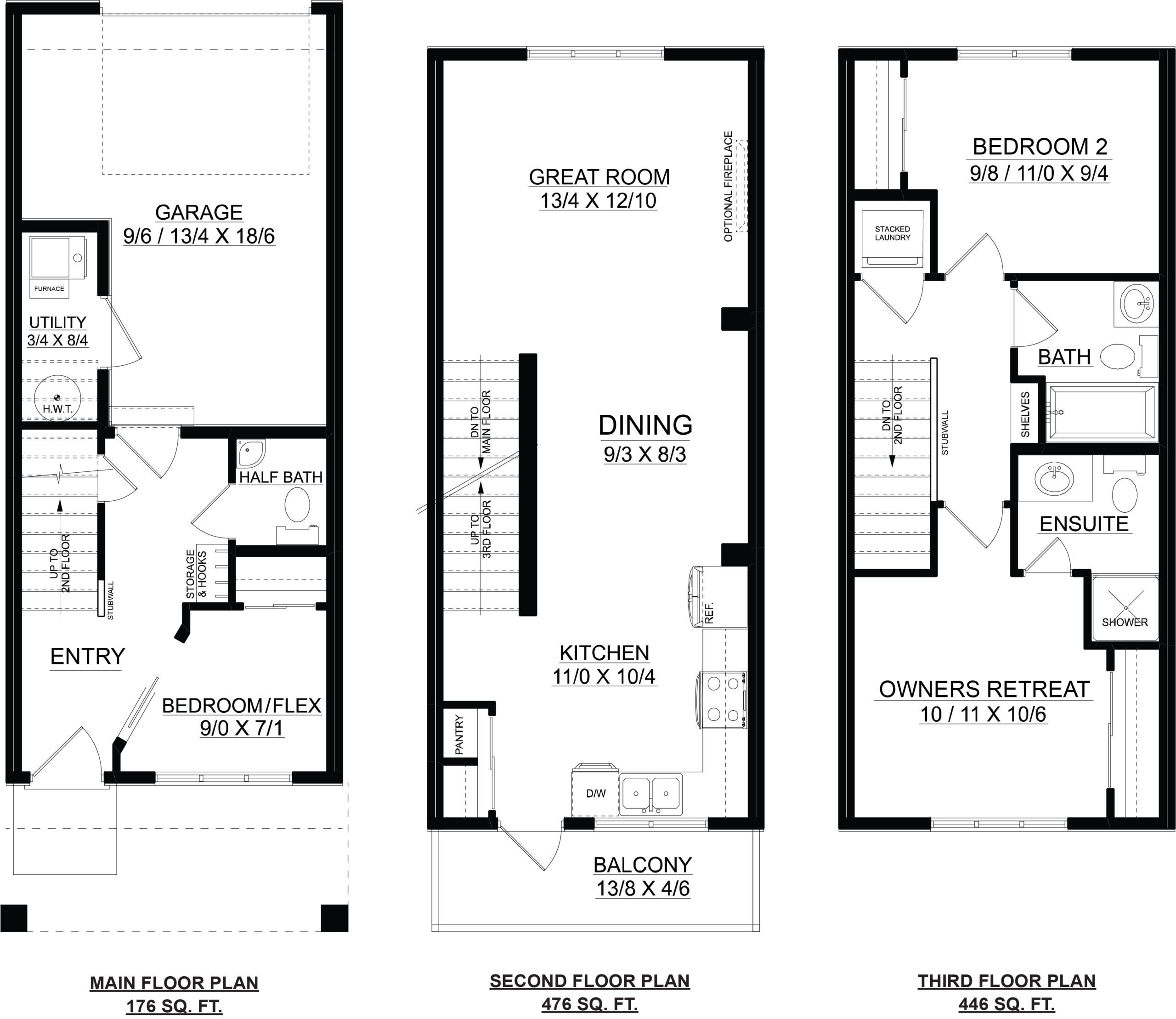 3 Beds 2.5 Baths 1098 SqFt Three-storey Townhome