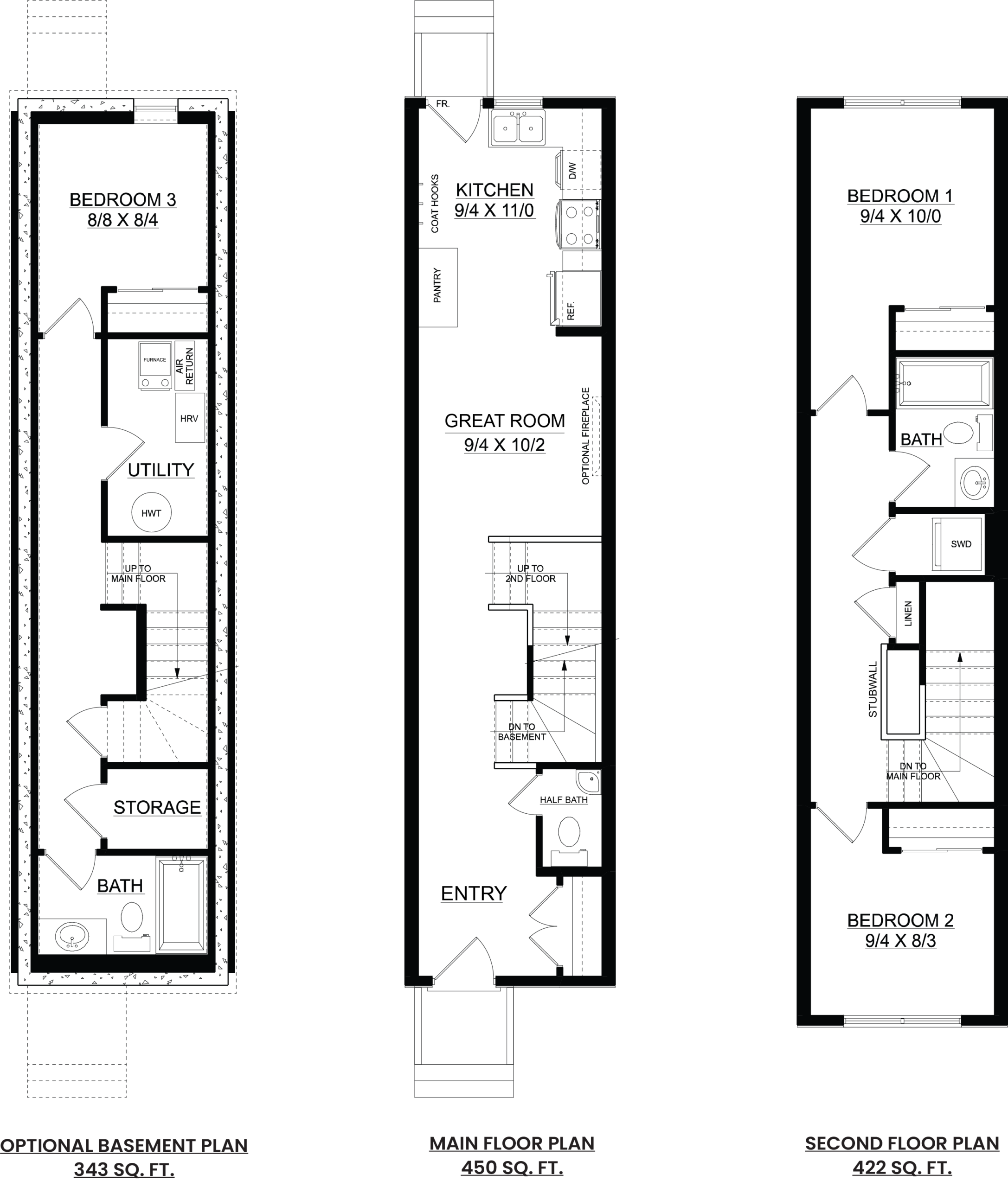 2 Beds 1.5 Baths 872 SqFt Two-storey Townhome