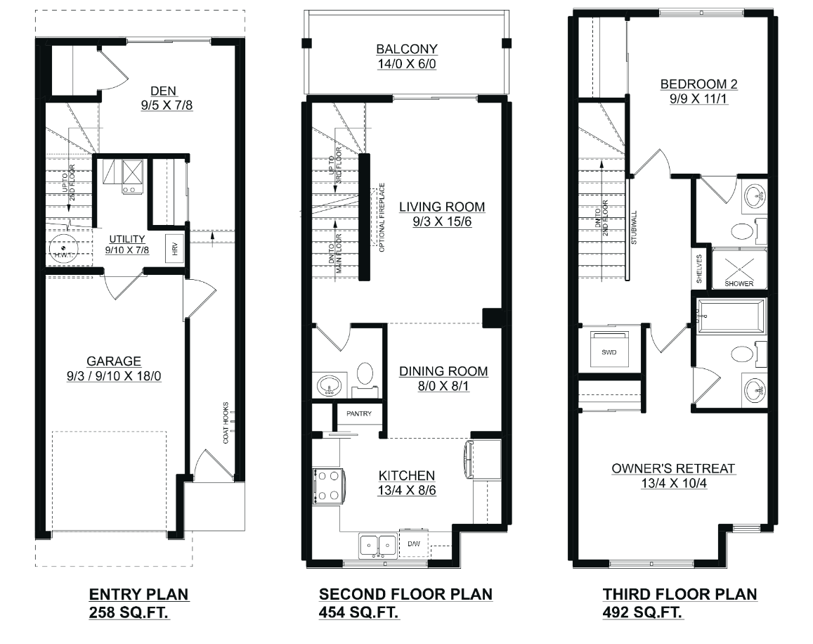 2 Beds 2.5 Baths 1204 SqFt Three-storey Townhome