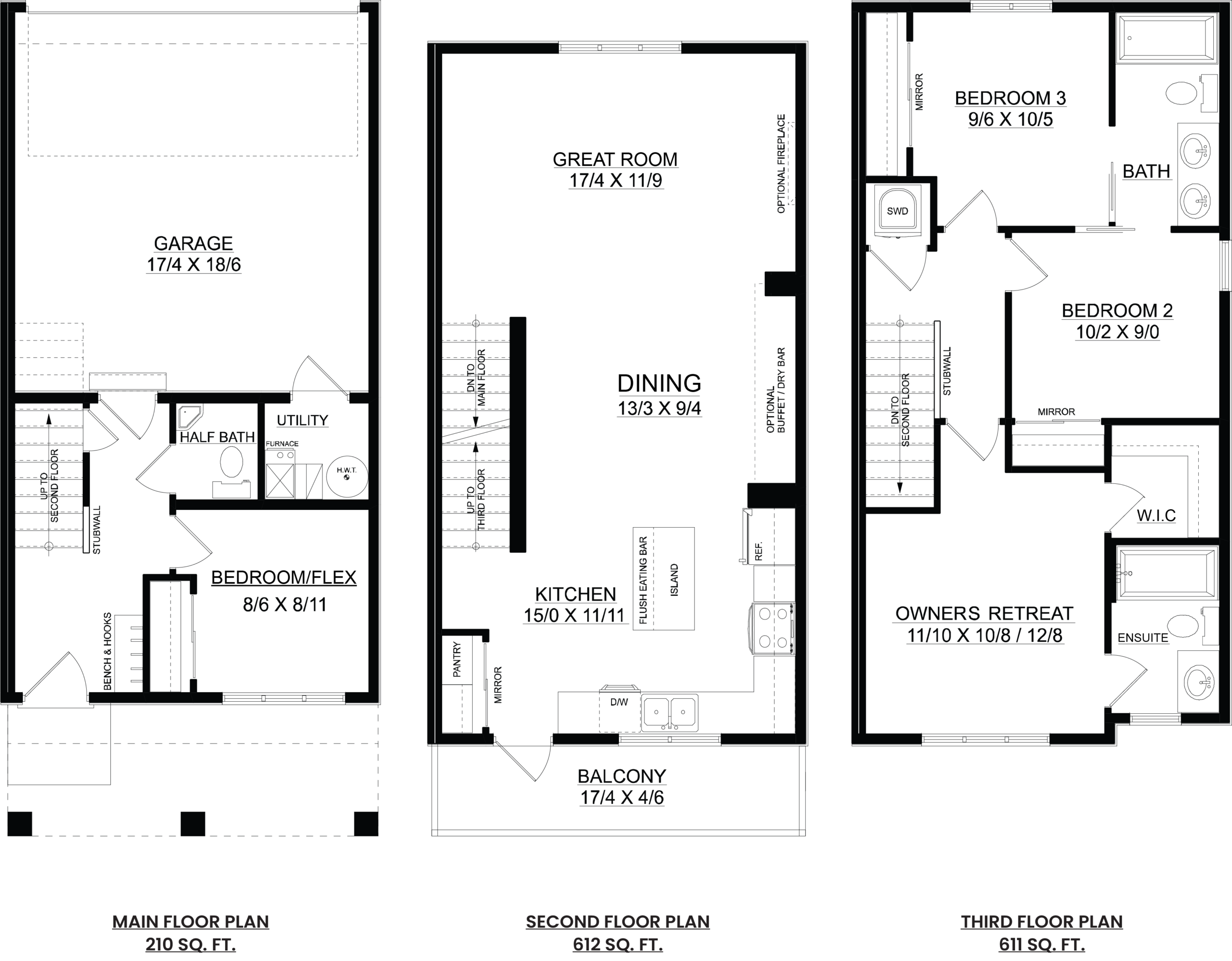 4 Beds 2.5 Baths 1433 SqFt Three-storey Townhome